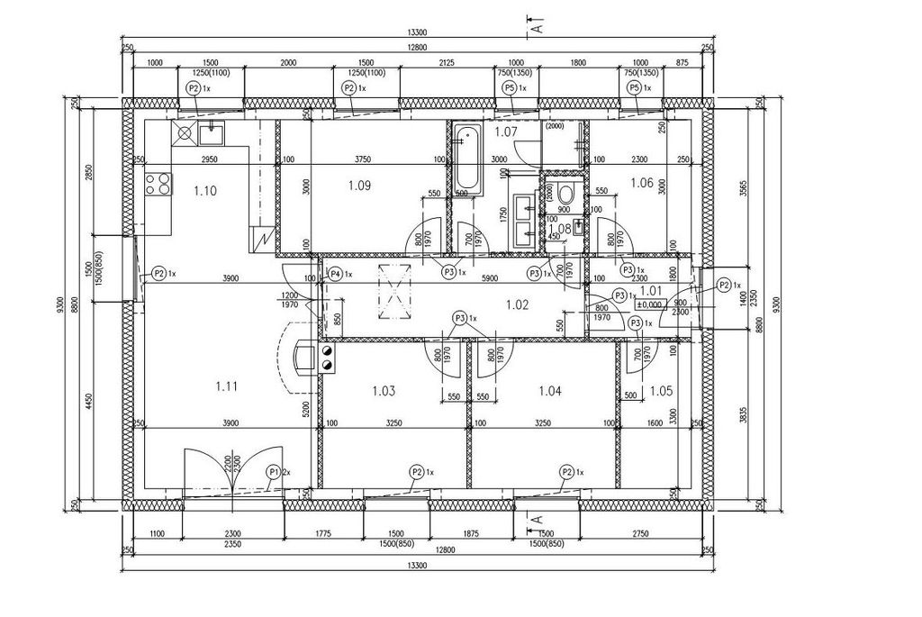 Dispozice domů je 4 + kk - zádveří, chodba, WC, technická místnost, obytná místnost s kuchyňským koutem, koupelna a tři pokoje.